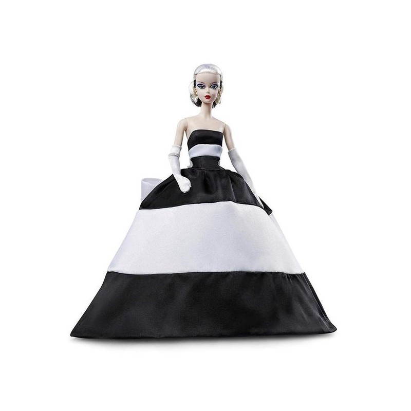 La colección de modelos de moda de Barbie® (BFMC®) celebra la elegancia atemporal de la alta costura clásica del pasado y agrega un toque contemporáneo. En conmemoración de su 60 aniversario, la muñeca Barbie exuda un glamour sofisticado en un vestido largo de satén, inspirado en el icónico traje de baño blanco y negro. Dos lujosos arcos de satén adornan la hermosa espalda, revelando una enagua neta negra completa. Guantes de ópera satinada, diamantes de imitación y aretes de imitación de perlas y un elegante adorno platino con rayas negro azabache completan este atrevido look. Esta muñeca de la colección BFMC® es verdaderamente el tributo perfecto a la muñeca que lo comenzó todo. Esta muñeca Barbie® coleccionable cuenta con una hermosa escultura vintage y un cuerpo de Silkstone® para infinitas posibilidades de presentación.• Edad: 4+ años• Modelo Mattel: FXF25• Línea: Barbie Signature