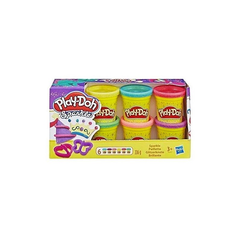 Incluye seis latas de 2 onzas de masa Play-Doh Sparkle de diferentes colores con brillos sutiles que haran de tus creatividades una maravilla.