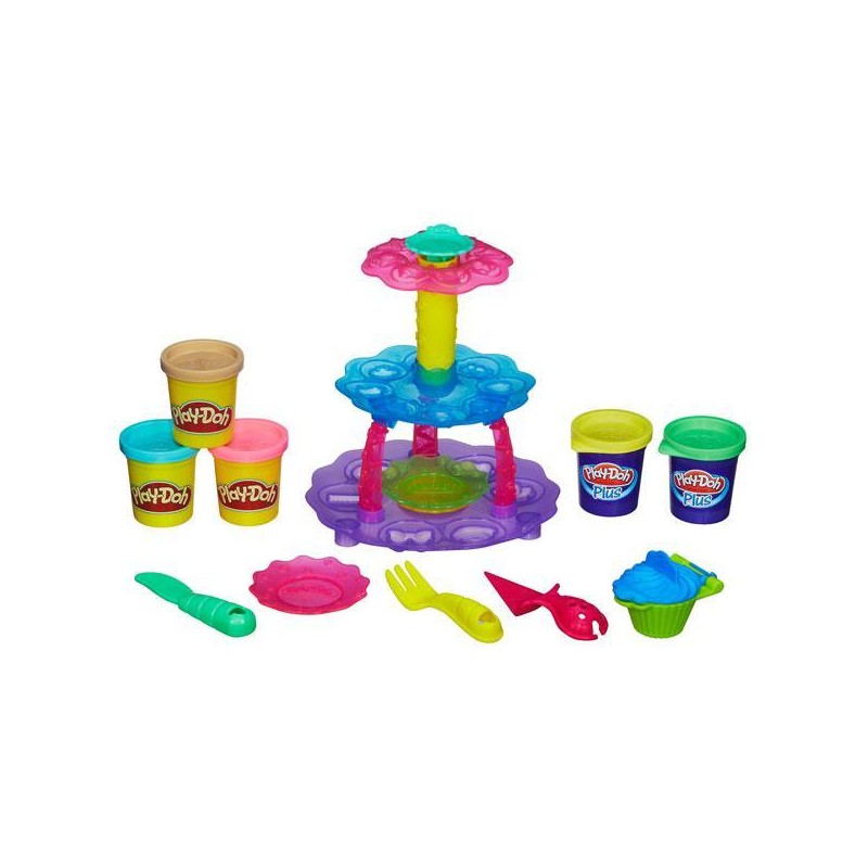 Moldes para decorar los cupcaks, bases, 2 latas de Play-Doh y 3 latas de Play-Doh Plus.